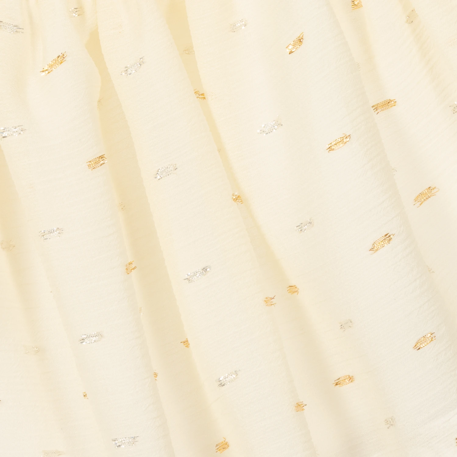 - Skirt overlay: 100% polyester (lightweight chiffon)