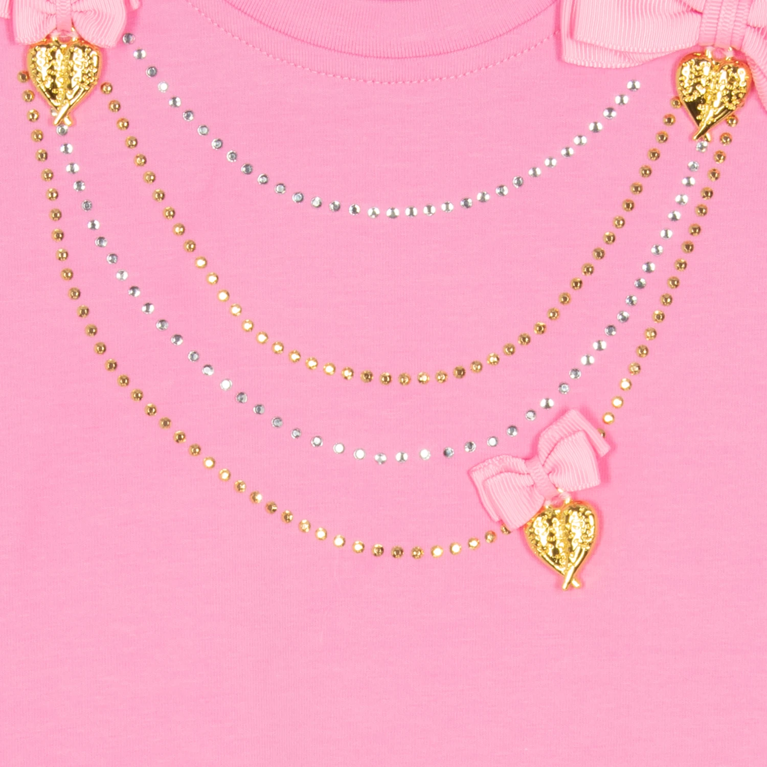 - Signature golden heart charms & grosgrain bows
