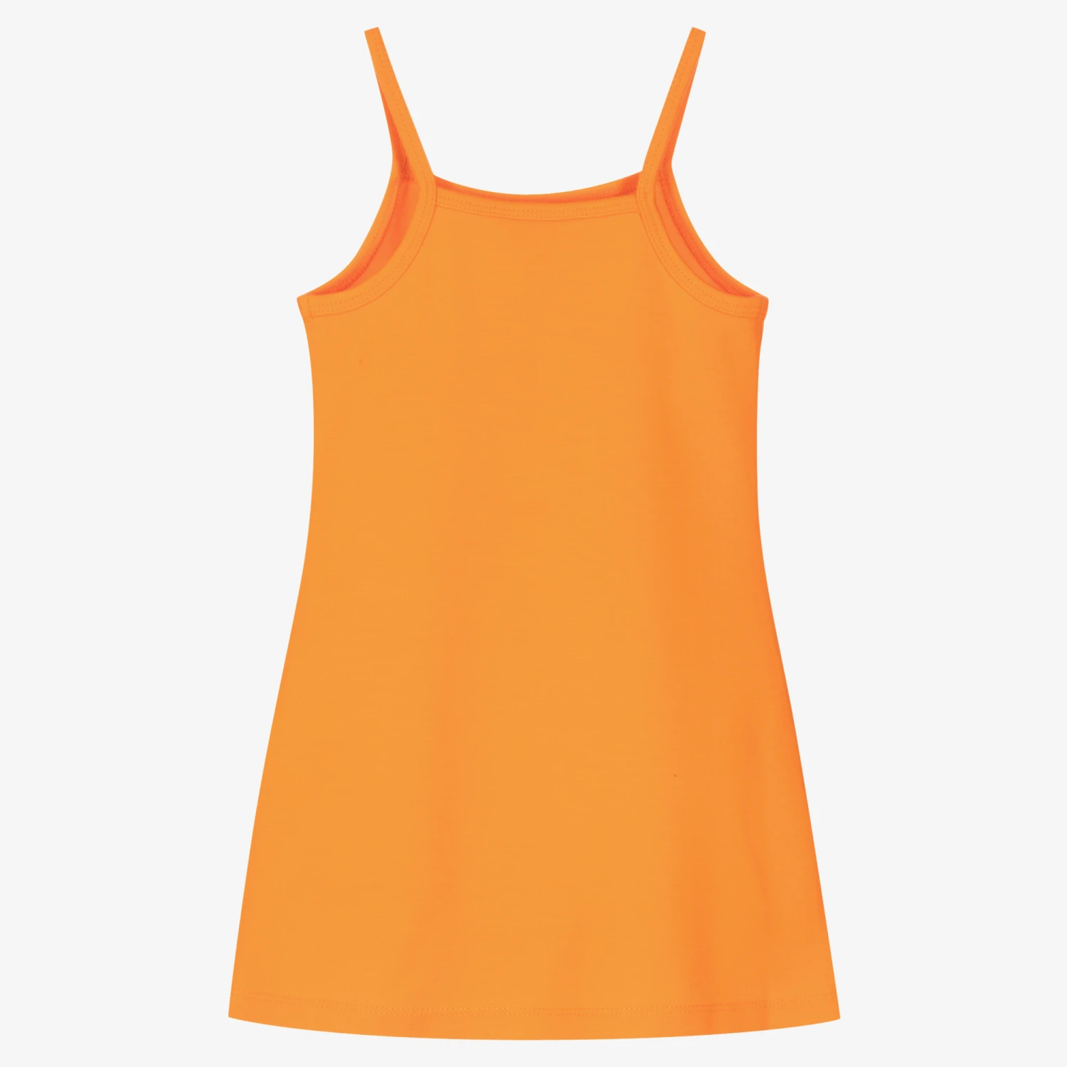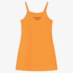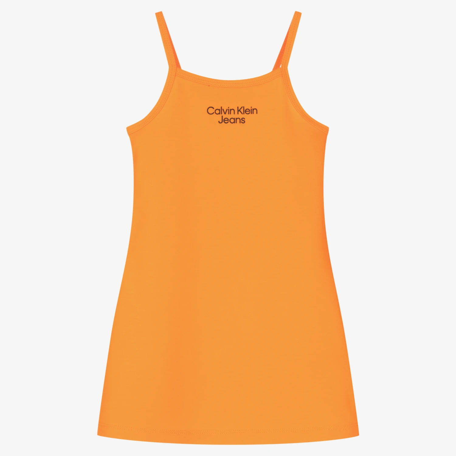 Channel the ’90s in this vibrant orange dress for teen girls from Calvin Klein Jeans. It is made in soft and stretchy jersey, with the American label’s cool black logo lettering across the front. Great to layer or wear alone, this on-trend design features narrow shoulder straps and a feminine square neckline. This garment is made with 70% sustainable materials including 66% Lenzingâ„¢ ECOVEROâ„¢ fibres.