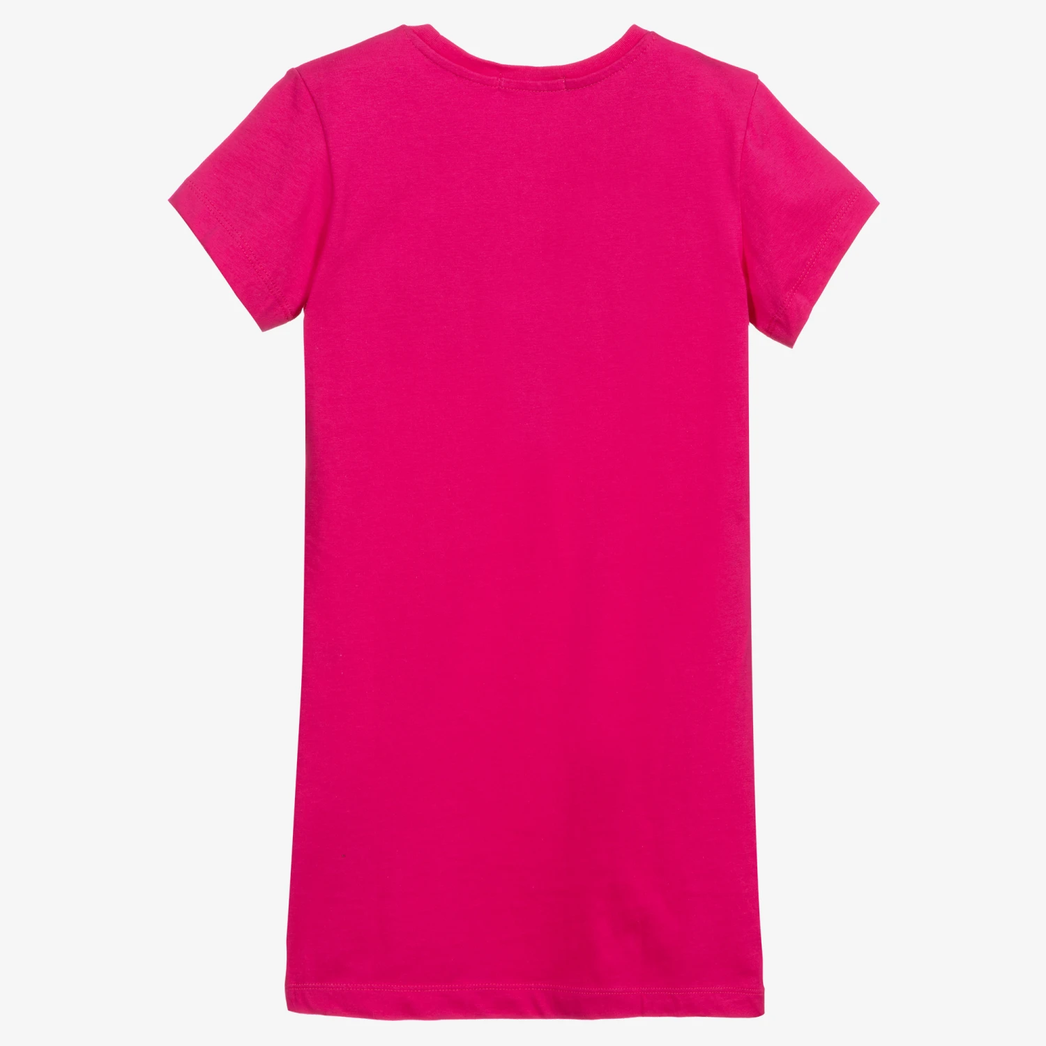 Teen girls pink organic cotton T-shirt dress by Calvin Klein Jeans. The iconic Calvin Klein logo in a shimmery gold and black print adds a dash of glam to this casual style.