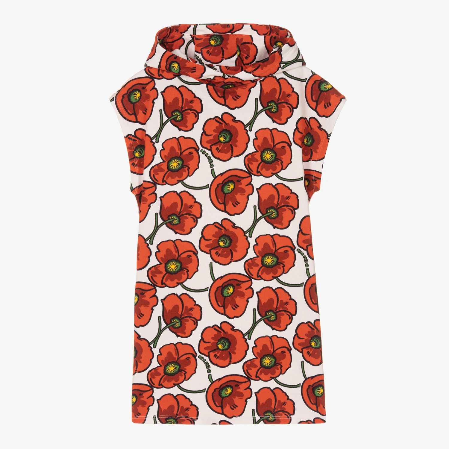 Offering a playful designer style, this red and white dress for teen girls is from KENZO KIDS. It is patterned in a cool poppy design, with the brand’s signature logo incorporated into the stem for a luxurious feel. Made from the softest cotton jersey, the hood and side seam pockets add casualness.