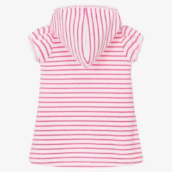 A sweet green dress for baby girls by Miranda, made in soft and lightweight cotton. It is patterned in pretty pink, yellow and ivory flowers with fixed pink grosgrain ribbon bows on the waist. Designed with open flutter sleeves, it has an ivory lace panel on the back and a layered hem for a cute and girly look. Fully lined in lightweight voile, it fastens with matching pink buttons on the shoulders and a useful side zip.