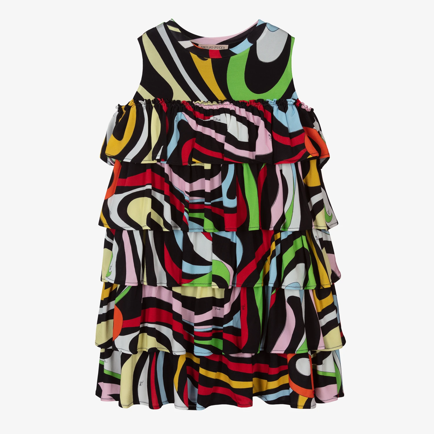 Infinitely stylish in bold and vibrant palettes, this Marmo print dress for teen girls is inspired by Emillio Pucci’s women’s collection. The Italian designer’s script logos are subtly blended amongst the pattern. This sleeveless piece is styled with numerous tiers and made from luxuriously soft viscose jersey, combining comfort and sophistication in one.
