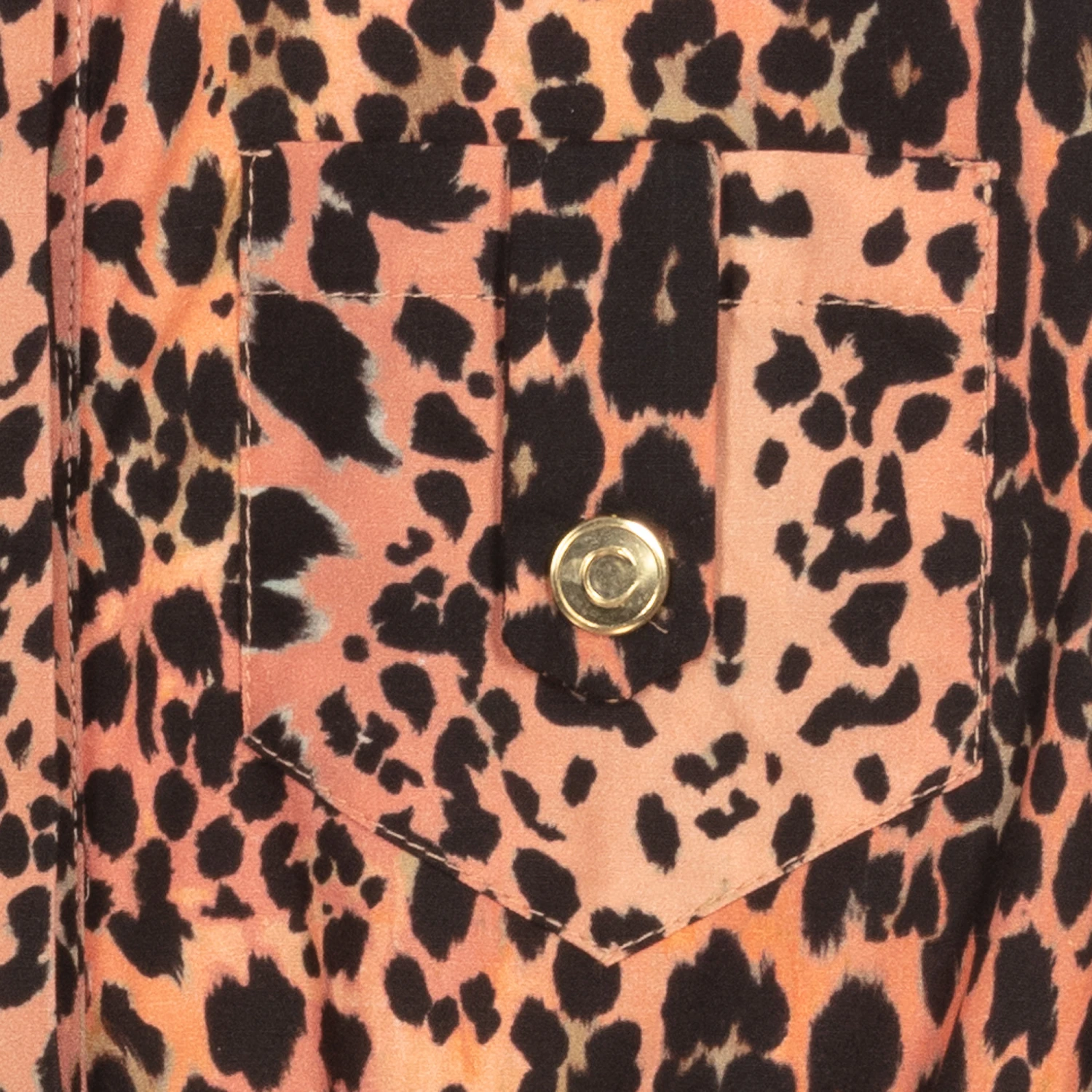 Pink, black and beige shirt dress for teen girls from luxury brand Roberto Cavalli, made in soft cotton poplin, with a lightweight lining on the skirt. It has vibrant ‘Queen of Sicily’ leopard print and logo embossed gold button details on the chest pockets. It has an elasticated waistband, a front button fastening, and a handkerchief hemline that is longer on one side.