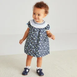 Beatrice & George Baby Girls Blue Floral Smocked Cotton Dress