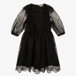 So stunning for teen girls, a luxurious black silk organza dress for teen girls by Stella McCartney Kids. Forming part of the designer’s festive capsule collection, it has beautifully crafted broderie anglaise details throughout the dress. Lovely for special occasions, it is accentuated with sheer puff sleeves, delicate scalloped trims and pretty ruffles. Lined in soft cotton poplin for comfort, it has a concealed back zip fastening for a sleek finish.