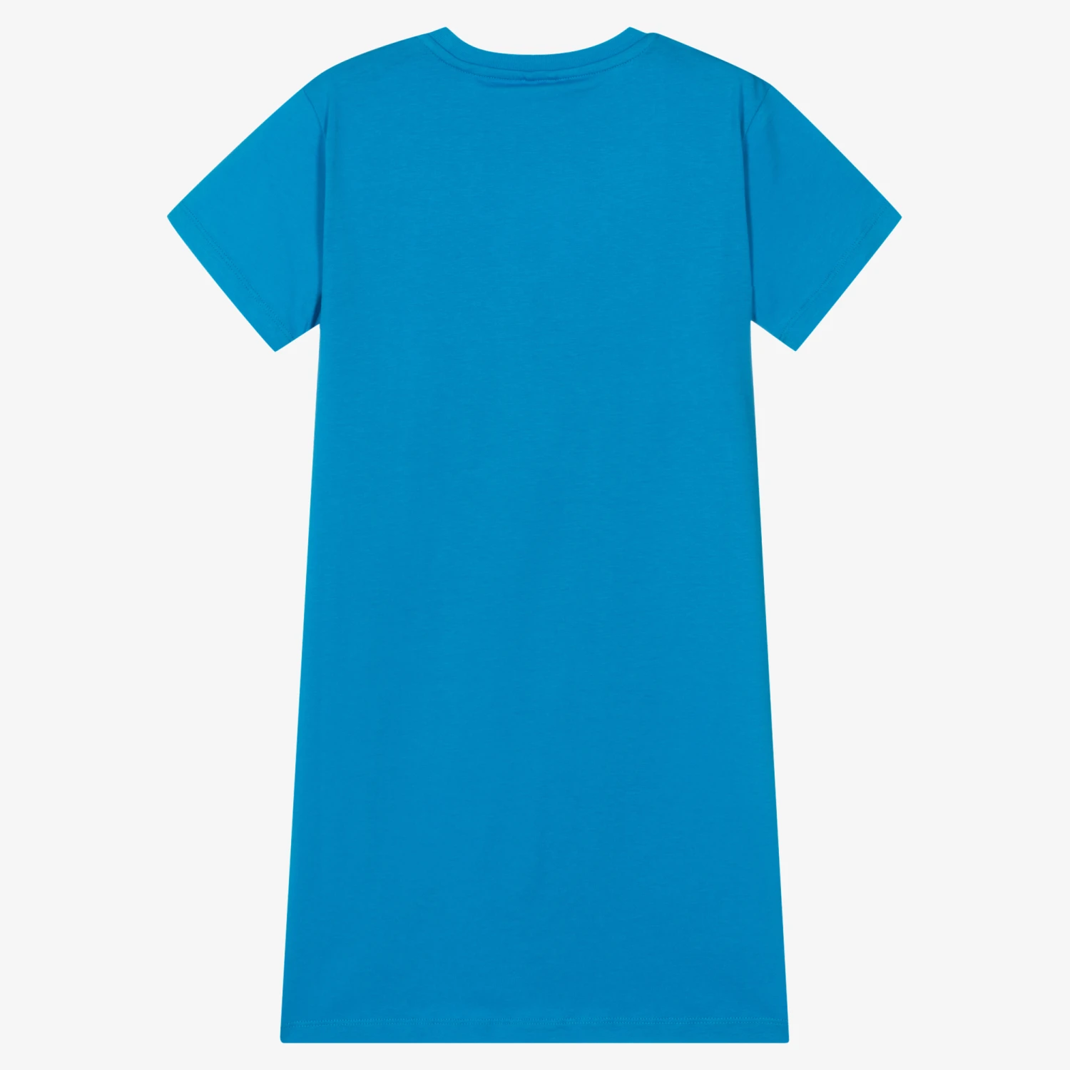 A vibrant blue T-shirt dress for teen girls from Stella McCartney Kids, made in soft and lightweight organic cotton jersey. Finishing above the knee, this casual design is characterised by a striking vinyl star appliqué across the front, with cool green and pink fringing beneath for a bohemian look.