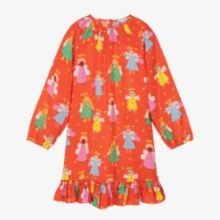 Festive angel print red dress for teen girls by Stella McCartney Kids. Made in lightweight Tencel™ twill, it fastens with buttons on the back and has concealed side pockets and a ruffle hem.